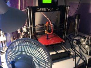 La buse n’est pas refroidie directement par un ventilateur dédié et ces derniers jours chauds rendent certaines impressions un peu difficiles, du coup j’ai placé un simple ventilateur domestique.