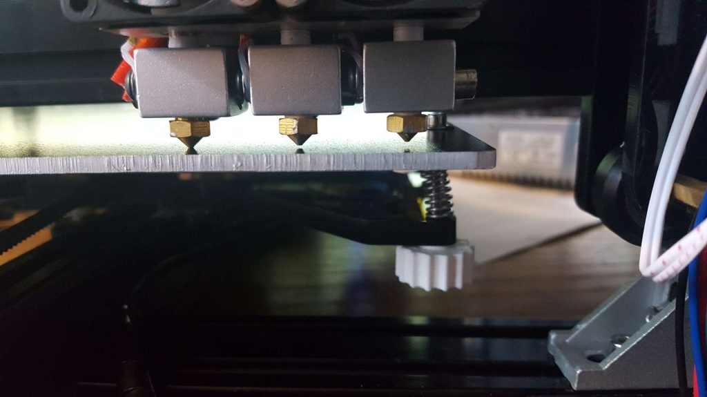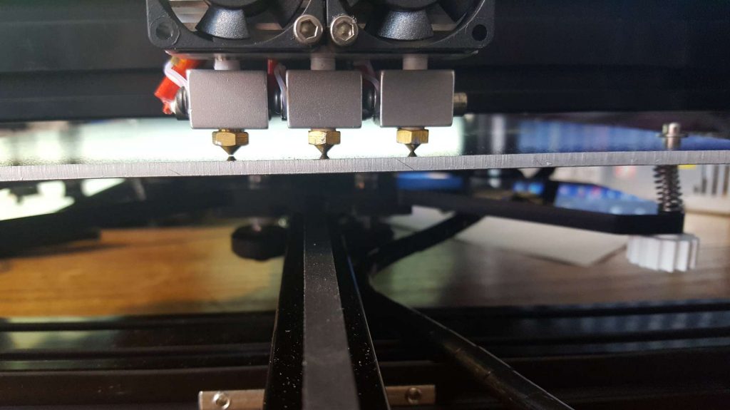 Il ne reste que la traditionnelle mise à niveau du lit, sauf que avec 3 têtes à aligner ce n’est pas gagné, les 3 doivent être parallèles ce qui n’est pas le cas ici.