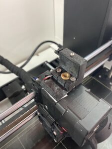 – contact auprès du chat prusa pour libérer la vis de maintien de la porte de l’extrudeur. doit affleurer ou être légèrement rentrée. Trop serrée = problèmes de détection du filament.