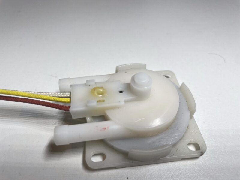 Dans un second temps, il est décidé de tester la pompe qui débiterait peut être moins que prévu, d’autant qu’il existe un protocole pour l’amorcer. Une alimentation en direct est réalisée, le débit en sortie est quasiment nul. La pompe existe en pièces détachée, elle est commandée et reçue rapidement.